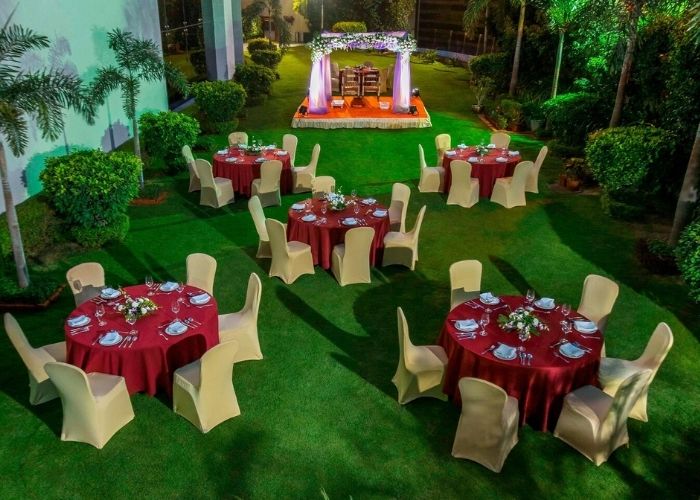 Located strategically on Satellite Road, Courtyard by Marriott Ahmedabad offers convenience and prestige. Its central location ensures ease of access for guests across the city and beyond, adding to its appeal as a top-tier venue in Ahmedabad. With multiple versatile event spaces, including opulent banquet halls and picturesque outdoor settings, Courtyard by Marriott Ahmedabad caters to intimate gatherings as well as lavish affairs.